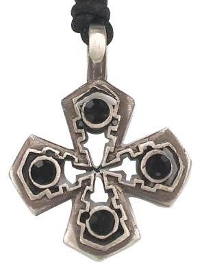Features genuine Swarovski crystal. This is a beautiful embattled Cross. It features a black crystal at each corner. An "embattled cross" is a special sort of cross with a unique history. This heraldic cross calls to mind the battlements of a fortress or castle, and thus may be used as a symbol of the "church militant" (the church at war, as opposed to the church triumphant -- those who have gone to be with the Lord).