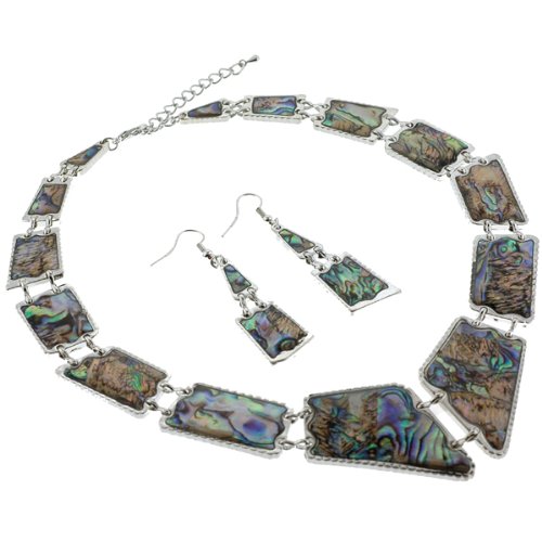 Abalone Necklace and Earrings Set in Square Style - 2.5'' Earrings, 16-18'' Adjustable Necklace Review