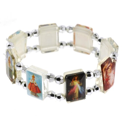 Faceted Acrylic Stretchy Bracelet with Christian Religious Icons and Saints Review