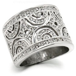 Dazzle everyone with this chic rhodium plated band. Clear Swarovski Crystal adorn the artsty design.