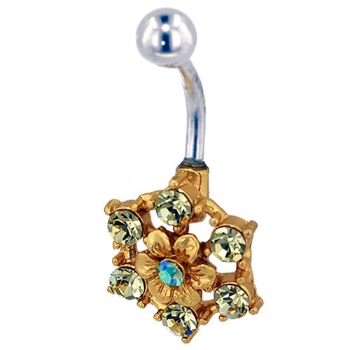 Belly Navel Ring Gold Light Green Crystal Flower Birthstones Belly Navel Ring Body Jewelry Review