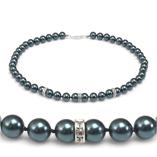 Free Shipping Genuine Swarovski Crystal Pearl Necklace with Rondelle - Tahitian (8mm) @ Amazon.com