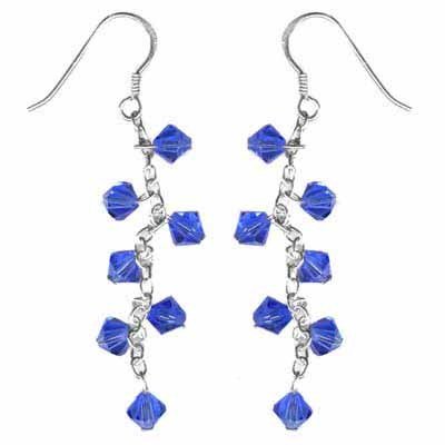 Blue genuine swarovski crystals sparkle as they graduate from slender silver chains in these silver fishhook earrings. Read more...