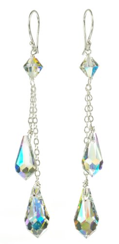 Sterling Silver Swarovski Elements Crystal Aurora Borealis Double Teardrop Earrings Review