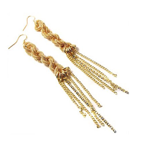 Here is a trendy pair of 4 1/4" long gold plated mesh chain braided earrings with dangling clear crystals strands. These fish hook style earrings will give your look some pizzazz and make your face sparkle! Remember, your earrings will come to you in a beautiful foil gift box perfect for gift giving. Box may be a different color than shown. Read more...