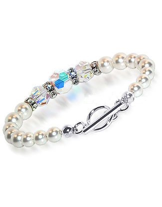 SCBR005 Sterling Silver Clear AB Swarovski Crystals White Pearl Bracelet 7.5" With Toggle Clasp Review