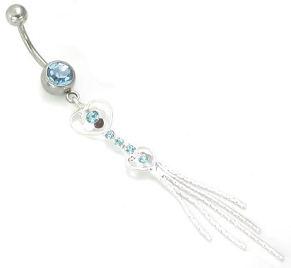 Single Gem Double Charm Heart/Flower with Tassels Belly Button Jewelry- Crystal 10g 7/8"~22mm Review