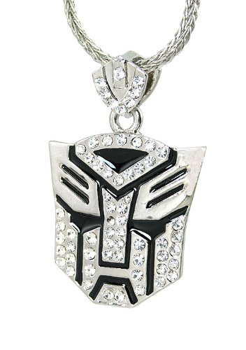 Free Shipping Transformers SilverTone White Crystals Charm Pendant 24" Franco Chain @ Amazon.com