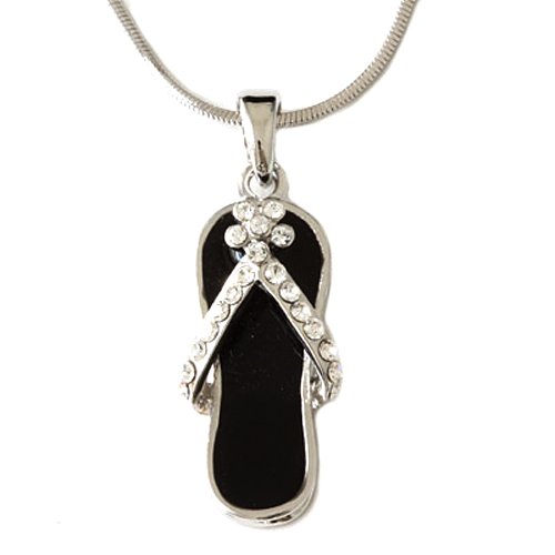 Free Shipping Black and Crystal Flip Flop Pendant Necklace Fashion Jewelry @ Amazon.com