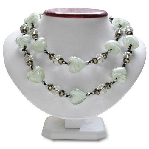 You're sure to be the life of the party in this feminine murano glass heart and crystal bead necklace. Necklace contains 16 white hearts and 112 crystal beads. Necklace is 35 inches long. Read more...