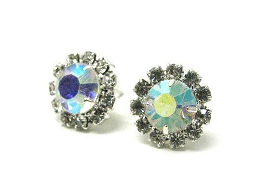 Small Round Aurora Borealis Crystal and Rhinestone Stud Earrings Fashion Jewelry Review