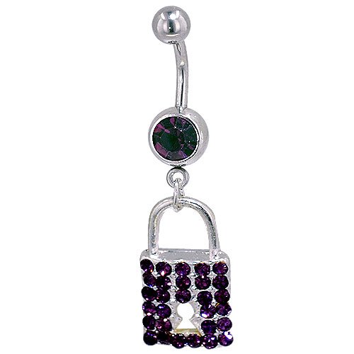Free Shipping Belly Navel Ring Purple Crystal Lock Belly Navel Ring Body Jewelry @ Amazon.com