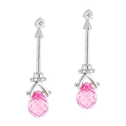 Dazzle And Delight With These Drop Earrings. An Eye-Catching Simulated Pink Sapphire Crystal Briolette Dangles From A Sleek Polished Sterling Silver Bar. A Glittering C.Z. Diamond Is Prong Set At The Post For Added Sparkle To These Modern Accessories. Read more...