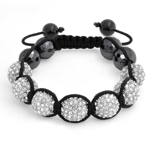 Shamballa, in Buddhist teachings, is a pure land whose inhabitants are enlightened. Reach fashion enlightenment with this white crystal beads shamballa bracelet. Made with Sparkling white Swarovski crystal encrusted shamballa beads, this white shamballa bracelet has a look that will turn heads. Bold hematite beads help to accent the look of this Swarovski crystal shamballa bracelet. A black nylon macrame cord gives this hematite shamballa bracelet an adjustable closure making this shamballa bracelet the perfect on the go accessory. Get your white Swarovski shamballa bracelet today and let your spiritual fashionista show. Read more...