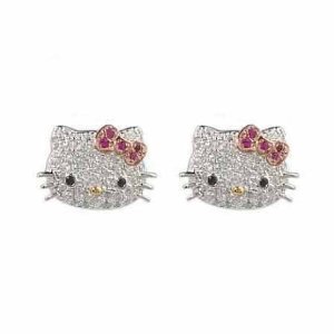 Worn by many celebrities, these irresistible Hello Kitty ear studs sparkle with brilliant CZ Diamonds. Celebrate your lifestyle with these absolutely adorable shimmering silver plated Hello Kitty ear studs. These sparkly earrings are custom made and complemented with a great assortment of CZ Diamonds. Black Czs form the eyes and the vivid pink bow adds a flash of color. Simply fabulous and a great gift! Read more...