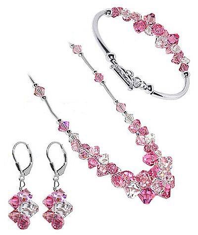 Sterling Silver Pink and Clear Crystal Bracelet Earrings with Necklace Jewelry Set Made with Swarovski Elements Review